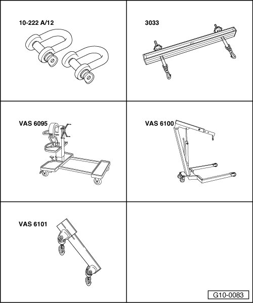 • Engine and Transmission Holder (VAS 6095) with Holder for V8 Engine Audi S4, allroad quattro ( VAS 6095/1-6) or Holder for V8 Engine Audi S4, allroad quattro (VAS 6095/1-6A)