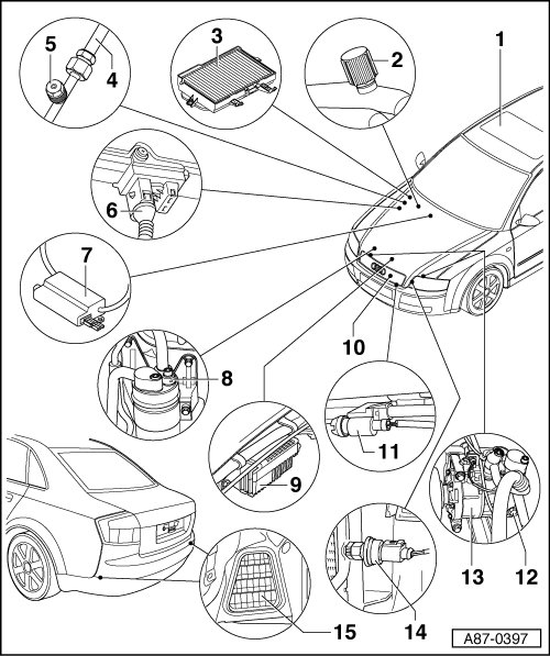 • Threaded connection must only be opened with refrigerant circuit discharged; deliver vehicle to an A/C system service point workshop
