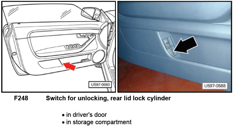 Switch For Unlocking, Rear Lid Lock Cylinder F248: