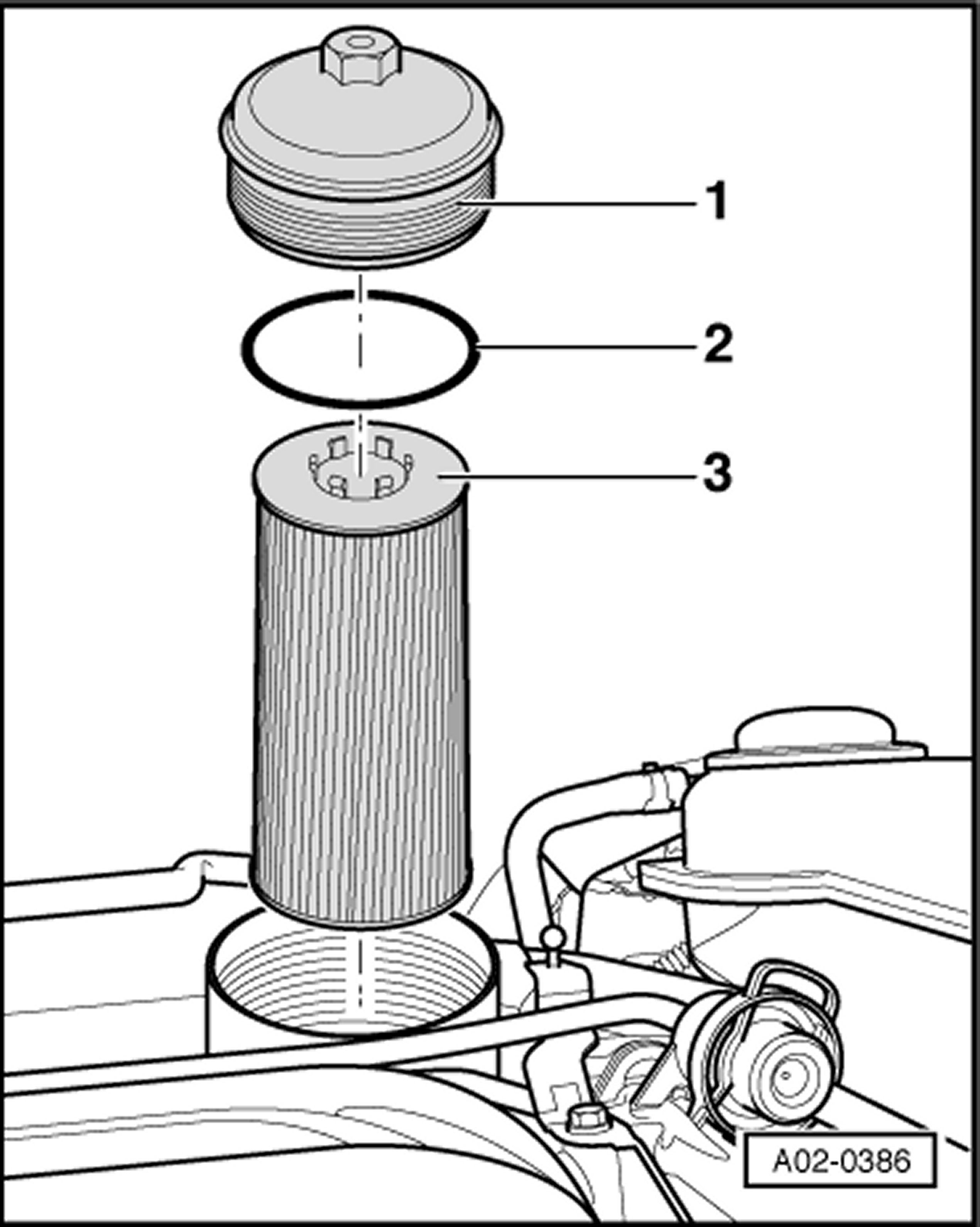 - Replace O-ring -2- as well as oil filter insert -3-.