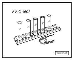 - Place injector which is to be tested into measuring glass of injection quantity tester VAG 1602.