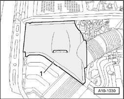 - Remove the cover on the right side of the engine compartment - 1 -.