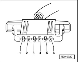 - Disconnect the Throttle Position (TP) Sensor G79 / Accelerator Pedal Position Sensor 2 G185 6-pin electrical harness connector - 2 -.