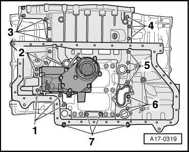 Tighten bolts 1 to 7 in diagonal sequence