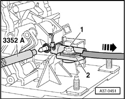 - Using an angle grinder or similar, cut off Adjustment pin for shift lock 3 3352 A at rear end of flat section - arrow -.
