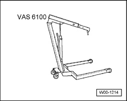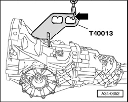 - Lift transmission with workshop hoist VAS 6100 and lifting aid T40013.