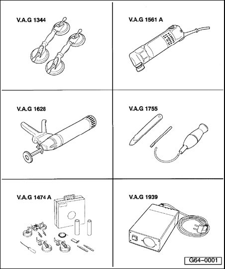 - Window Removing Kit V.A.G 1755 or Cutting Tools for Glass V.A.G 1351