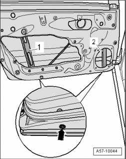 NOTE: When removing regulator or working with extreme adjusted values, it is necessary to perform a window regulator basic setting. The door trim, window regulator motor, speaker and door insulation are removed for this.