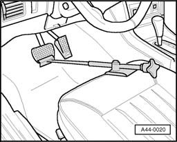- Insert Brake pedal handle V.A.G. 1869/2 between brake pedal and drivers seat. Depress the brake pedal by at least 60 mm.