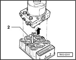 ^ Protect connector housing of control module against escaping brake fluid. Otherwise corroding contacts can cause a breakdown of the system.