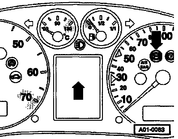 After the ignition is switched on, the system conducts an automatic test sequence. The indicator light for ABS - K47 (right arrow) is activated by the ABS control module and lights up for 2 seconds .