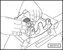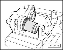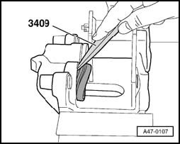 - Remove protective seal from piston groove using Removing wedge VAS 3409.