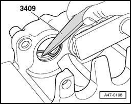 - Insert the inner sealing lip into the grove in the cylinder, using Removing wedge VAS 3409.