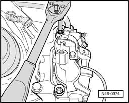 - Unscrew and remove both guide pins from brake caliper.