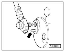 - Make sure that the groove in the ring connection on the brake hose is installed in the locating lug (arrow).