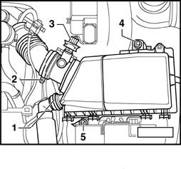 - If installed, disconnect secondary air intake hose -1- from air cleaner.