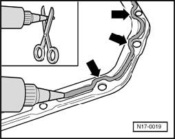 The bead of sealant must not be thicker than 3 mm, otherwise excess sealant can enter the oil pan and obstruct the filter screen in the oil intake line.