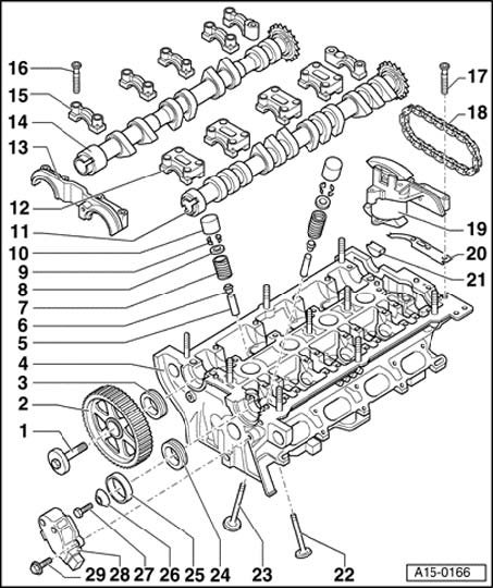 ^ After installing camshafts wait for approx. 30 minutes before starting engine. Hydraulic valve compensation elements have to settle (otherwise valves will strike pistons).