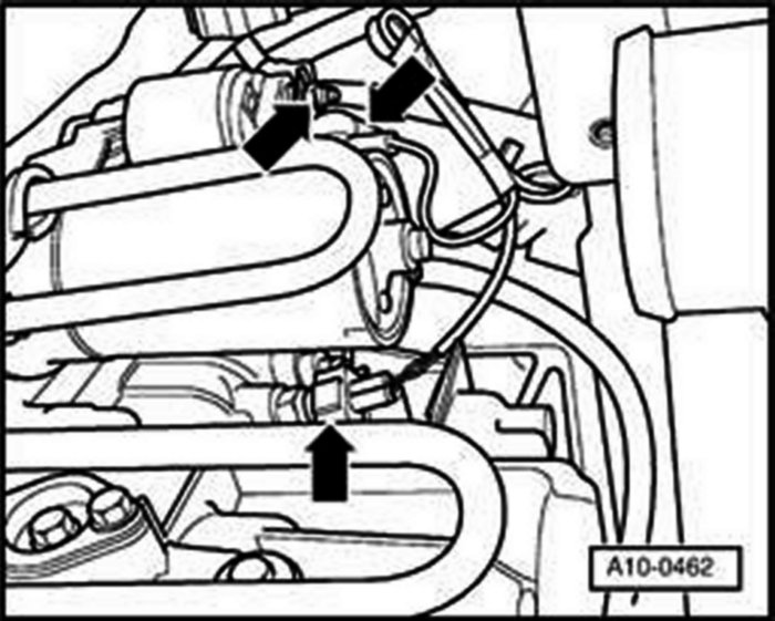 - Disconnect connector from coolant temperature switch on coolant line and move wiring clear.
