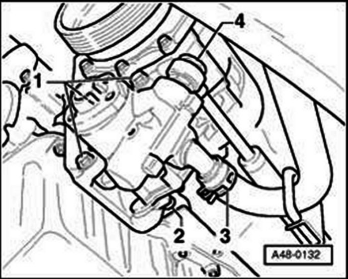 - Disconnect air hose -2- from mass air flow sensor.