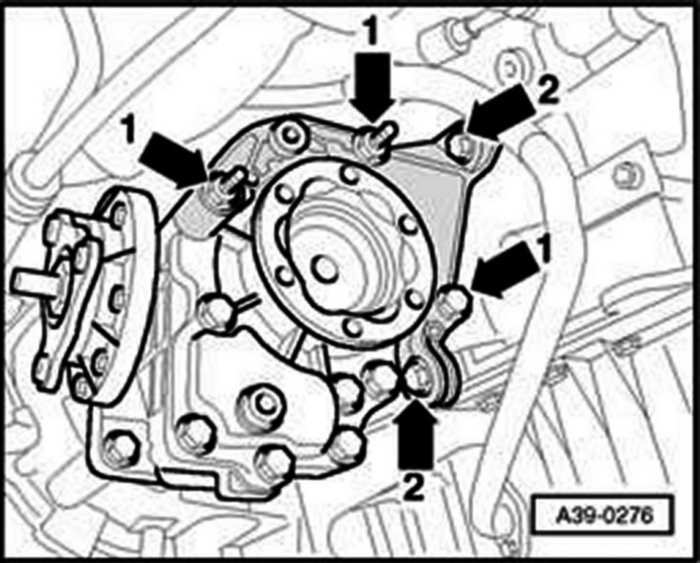 - Unbolt pump from bracket -1- and -2- (4 bolts).