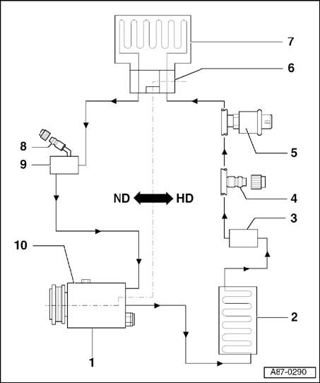 - Refrigerant system pressures are regulated and maintained within certain tolerances by the variable displacement compressor independent of engine speed (RPM).