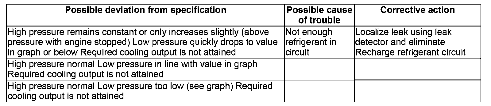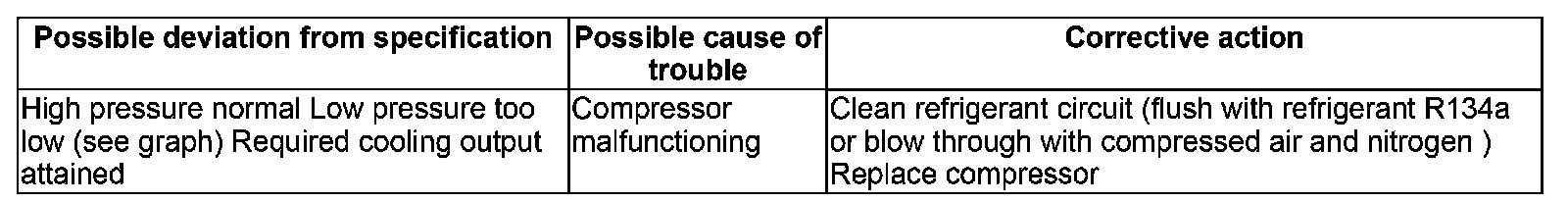 - Pay attention to the following as regards fault "High pressure normal, low pressure too low" : This fault may cause the evaporator to ice up or the A/C Refrigerant Low Pressure Switch F73 to shut off the compressor although the amount of refrigerant in the circuit is OK.