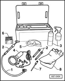- Certain leaks are difficult or even impossible to locate using an electr. leak detector. In such cases, use can be made of the leak detection system VAS 6201.