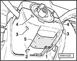 - Remove screws -1- and remove handle for steering column adjustment -5-.