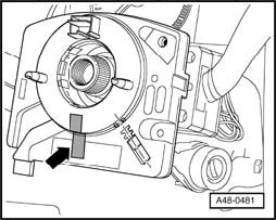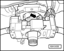 - Carefully release lower fasteners and detach housing of spiral spring with slip ring and steering angle sensor from steering column switch.