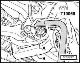 - Install oil filter - A - and tighten to 35 Nm using Key T10066.