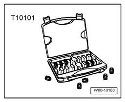 If lightly corroded wheel bolts are reused, they must be cleaned in area of spherical cap and threads and Optimol AT G 052 109 A2 paste must be applied to slide surfaces as follows (all vehicles except RS 2 and RS 4, type 8D):