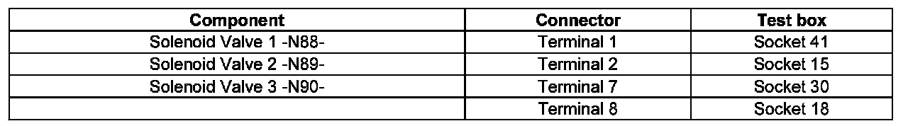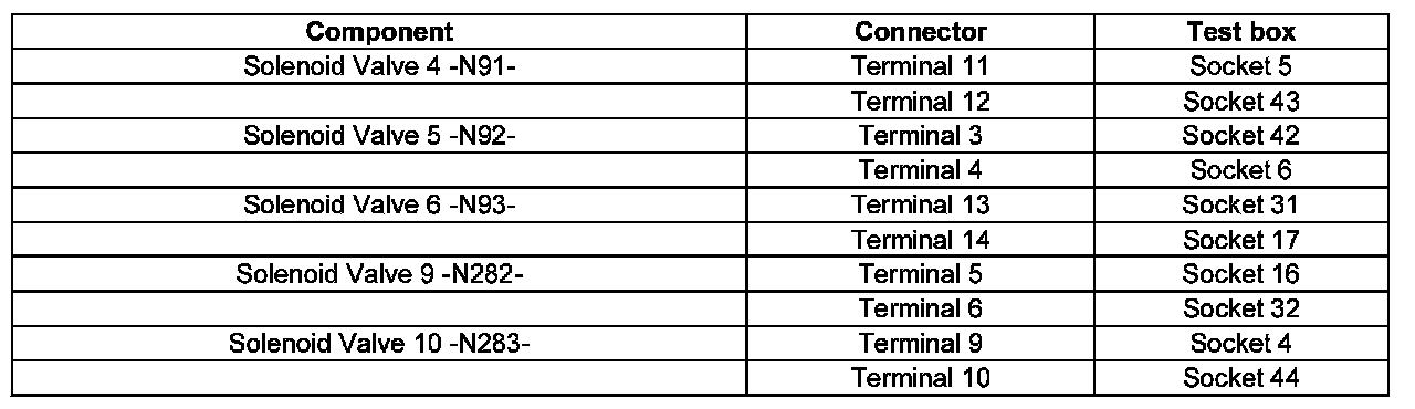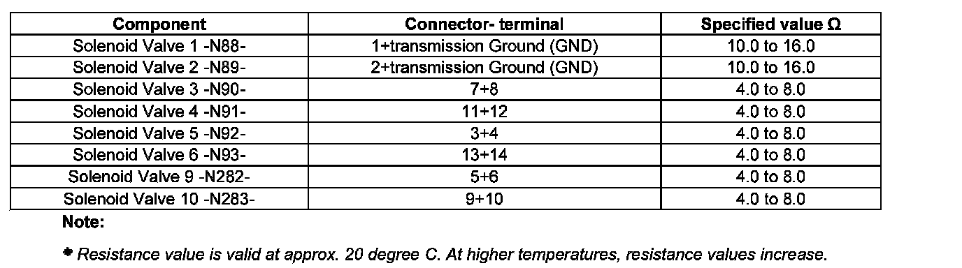 - Check resistances of solenoid valves at connector to solenoid valves: