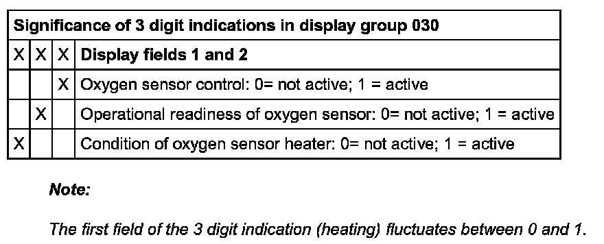 - "Oxygen sensor status" indicates status of oxygen sensor control and oxygen sensors.