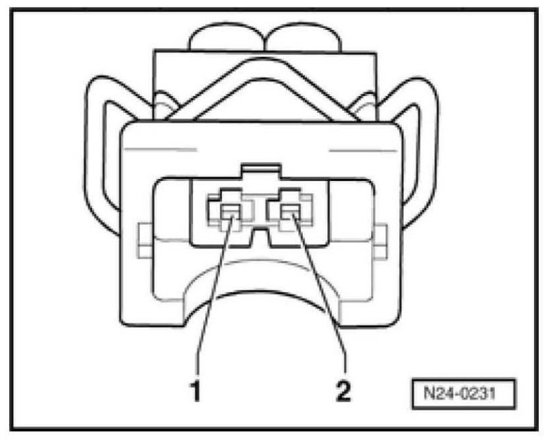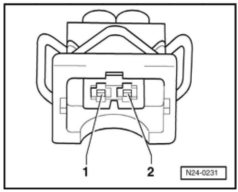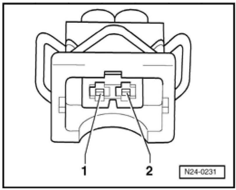 - Connect voltage tester V.A. G 1527 B to contact 1 (positive) and contact 2 of the connector.
