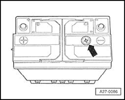 The "magic eye" - arrow - gives information about the electrolyte level and charge condition of the battery by means of a color display. Possible color displays.