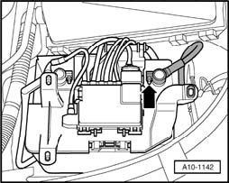 - Disconnect negative ( - ) terminal -arrow- from battery.
