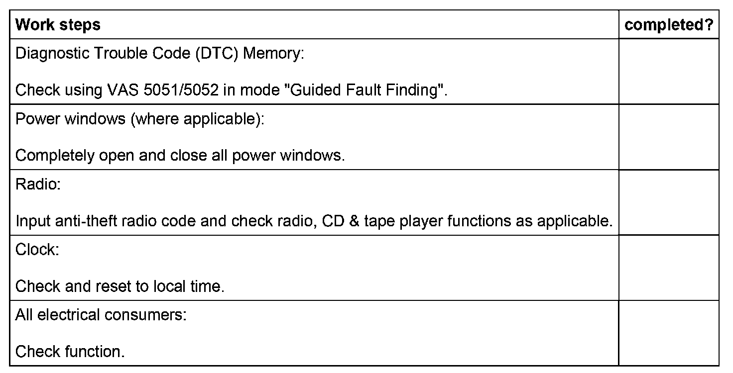 Work steps required after reconnecting battery