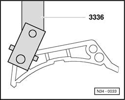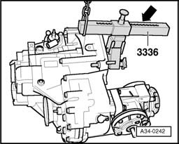 - Lift transmission using shop crane VAS 6100 and transmission support jig 3336.