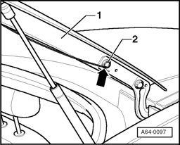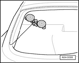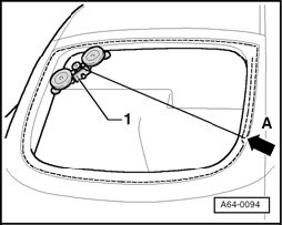 - Pull end of cutting wire through adhesive bead toward the inside in the same way, and secure with tailgate hinge securing bolts.