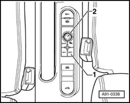 - Grab the function selection switch -1- by knob -2- and pull it carefully upward out of compartment.