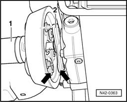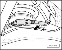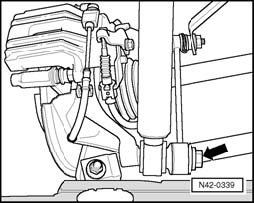 - Remove lower bolt for suspension strut - arrow -.