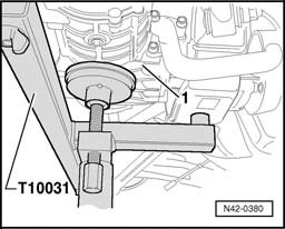 - Place transmission jack e.g. V.A.G 1383A under rear axle - 1 -.
