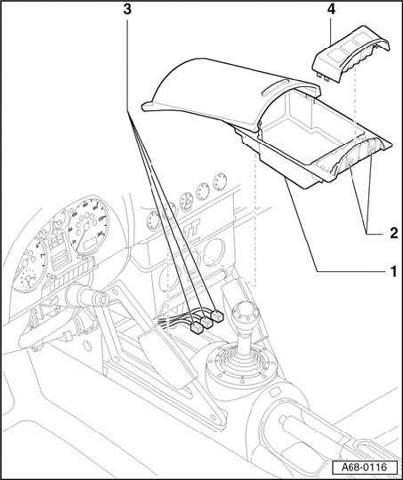 - Use flat screwdriver to press down center catch (between retainer tabs - 2 -).