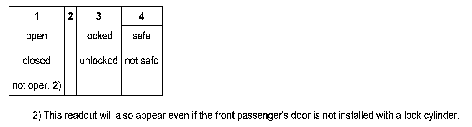 Table of readouts