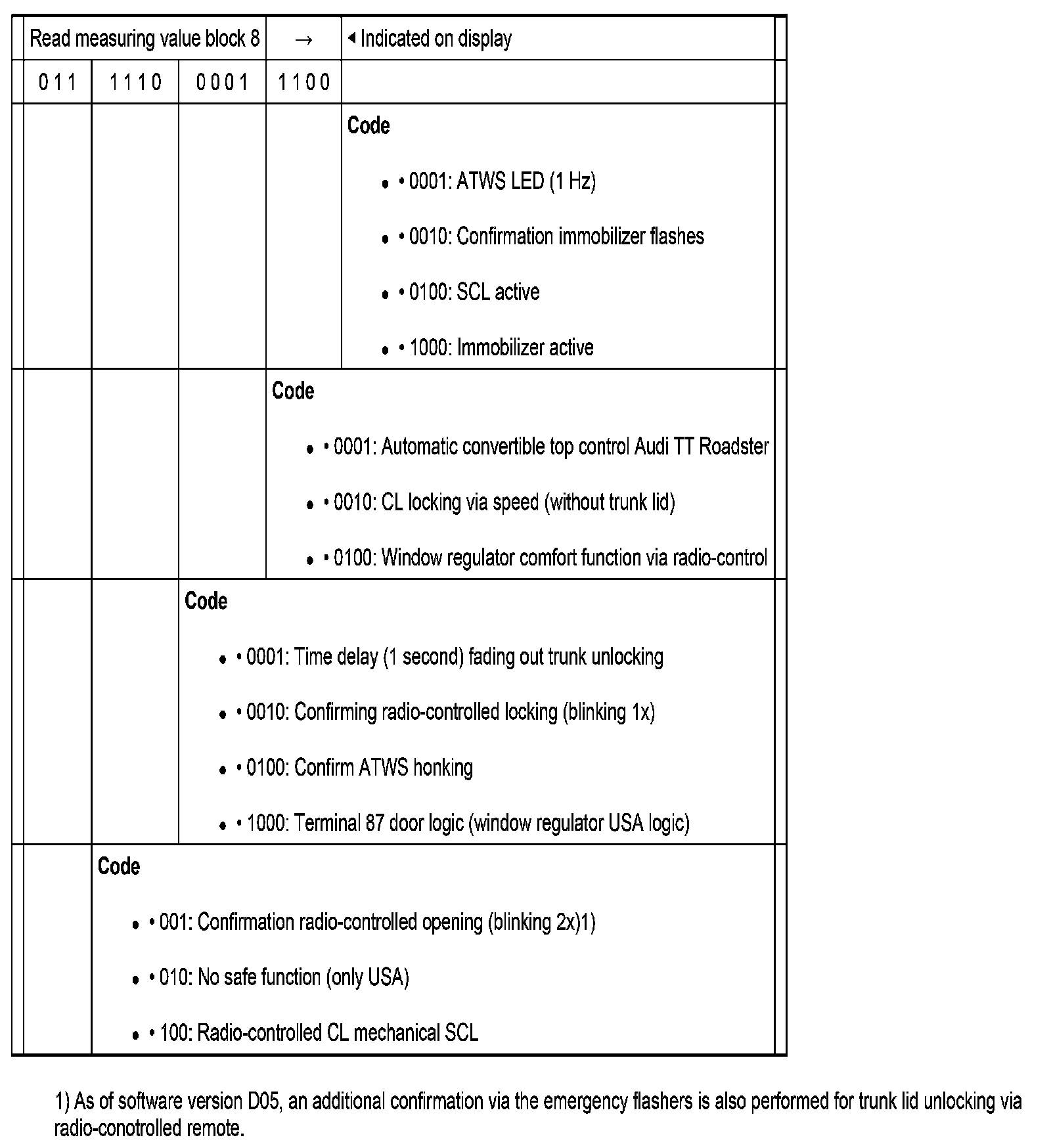 Measuring value block 009 - TT Roadster Only