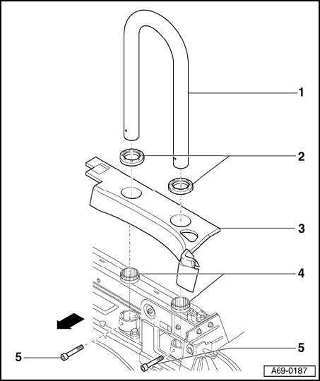 - After installing rollover bar, check that rubber guide - 4 - is inserted in crossmember up to edge - A -.