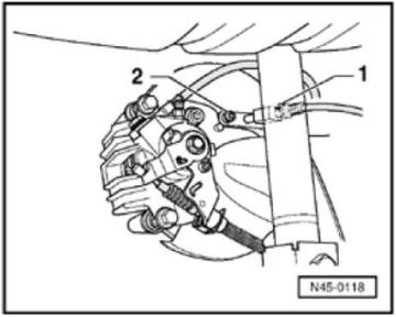 - Remove right and left rear wheel speed sensors -G44-/-G46-.