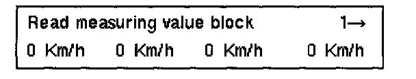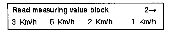 The instantaneous wheel speeds are indicated. They serve to check the wheel speed sensor signal (wheel must be raised and turned by hand).