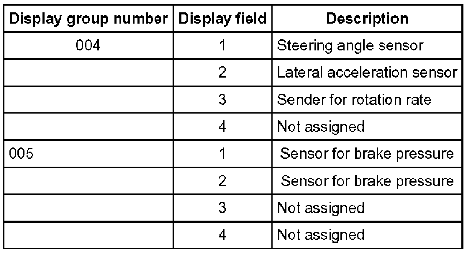 The control module can transmit numerous measured values. These measured values provide information about the operational status of the system and the sensors connected to it. In many cases the data supplied can be used to troubleshoot and repair malfunctions. Because these measured values cannot all be transmitted simultaneously, they are organized into individual display groups that can be selected via display group numbers.